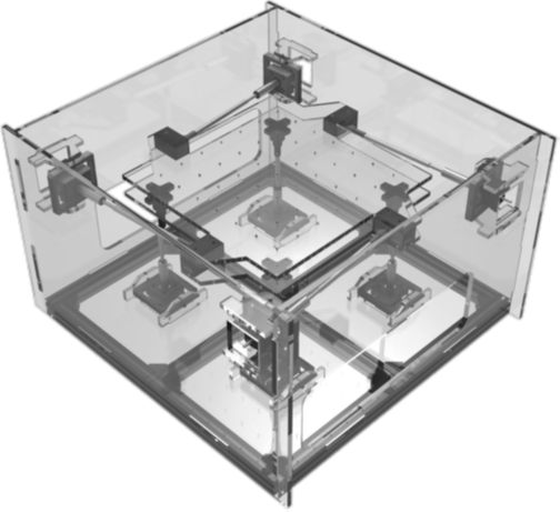 Mock-up of the desk‑size parallel kinematic machine for simulation of seismic events (STRIC/STRIC+ project)